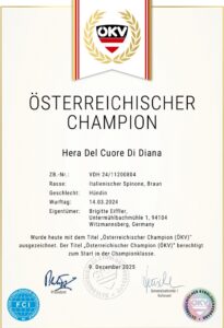 Herzliche Glückwünsche an Kerstin mit Franceso del cuore di Diana zum „Deutschen Champion (VDH) !